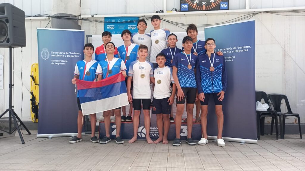 También en Natación, José Vázquez, Fabrizio Ocampo (CAPRI, Posadas), Tadeo Méndez (CAPRI, Posadas), Gonzalo Aby (CEF 6, Oberá), cosecharon el 2° puesto en posta 4x50m combinado. Y lograron medalla de plata.
